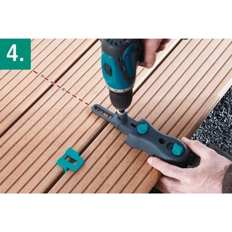 - Guide de perçage mobile pour terrasse bois, avec douilles de perçage 4 mm en acier trempé, pour guider le foret de manière sûre