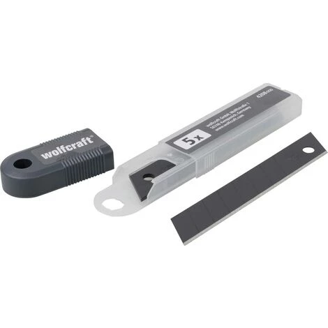 - 5 lames de coupe-fil noires et extra-tranchants adaptées à tous les couteaux de lame de coupe-fil disponibles dans le commerce dans une boîte de rangement.