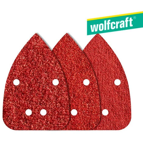 Pack 10 feuilles abrasives adhesives, corindon, grain 80, 120 et 240, perforées, 96x136mm wolfcraft.