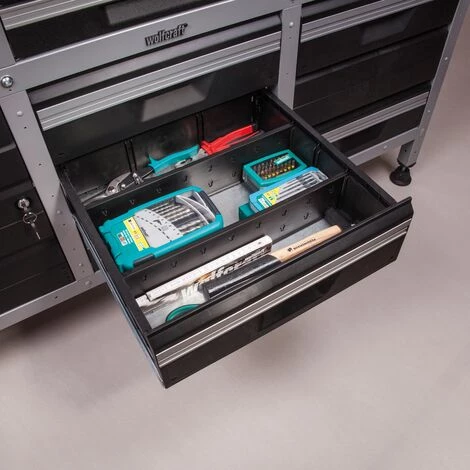 Ce kit de sous-division de Wolfcraft contient deux subdivisions pour des tiroirs de taille moyenne. Utilisez ces sĂ©parateurs de tiroirs pour vos Ă©tablis. La longueur de chaque subdivision est de 41 cm avec une largeur de 10 cm. Convient au tiroir type M, numĂ©ro d’article 5352696 (numĂ©ro Wolfcraft 6780000). Divisez vos tiroirs comme vous le souhaitez grĂące Ă ce sĂ©parateur en plastique durable et robuste.